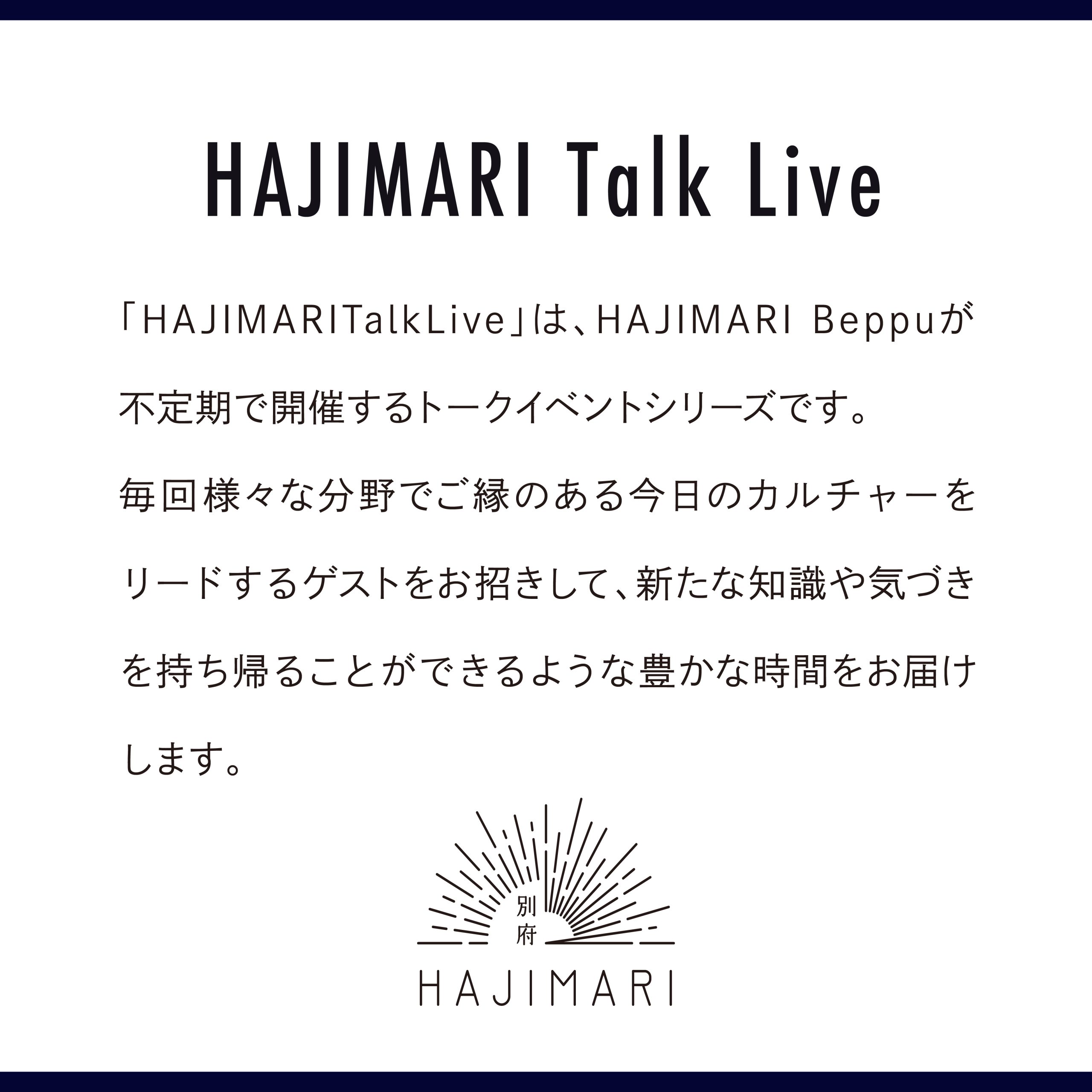 今回のトークでは、企画という仕事の裏側だけでなく、万博という大きな舞台で考えたこと、その経験を経たいまだからこそ見えている視点、土地と人の関わり合い、幸せの設計、そしてこれからの日本や地域に必要な感覚について、別府という場所だからこそ語られる言葉が紡がれます。
