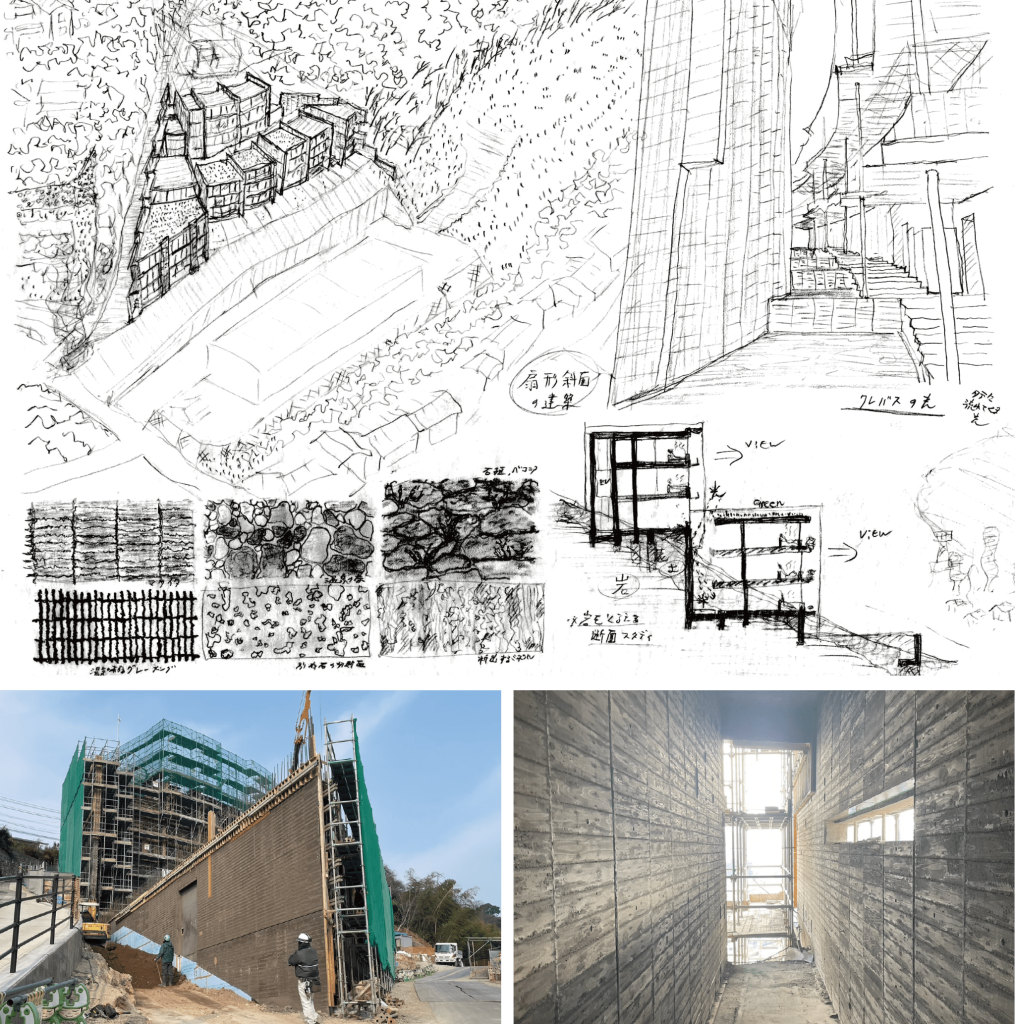 12月の開業に向け、建築主である関屋リゾート様の新たな試みを具現化すべく、設計・施工の各チームが対話を重ねながら、建築・風景・滞在体験を編み上げている。鉄輪という土地の読み解きから生まれた、新しい滞在のかたちが、姿を現しつつある。